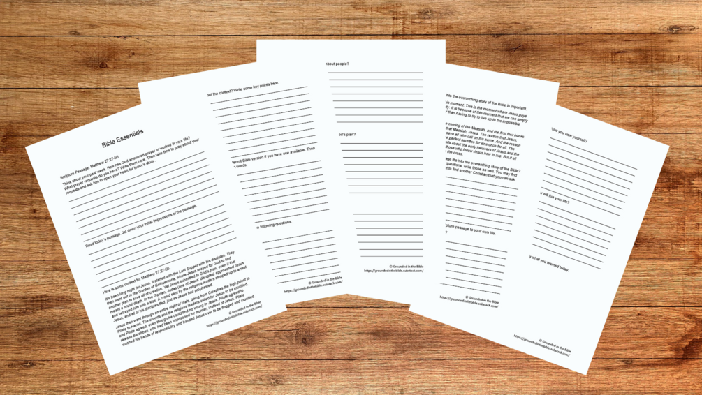 This bundle contains journal sheets for Set 1 of the Bible Essentials series. This set contains studies on 11 essential Bible passages: